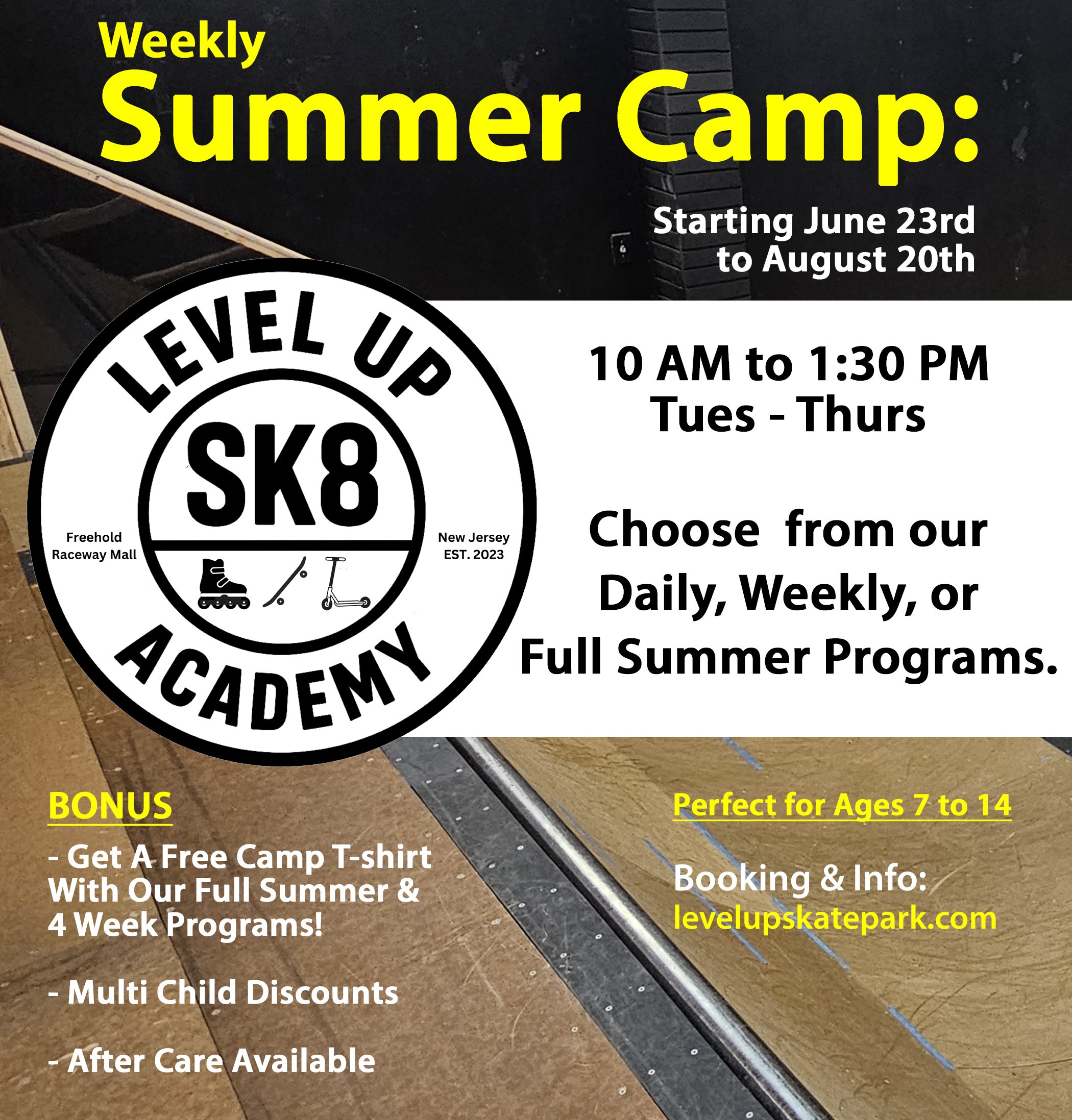 At our Level Up Skate Facility in Freehold New Jersey, we believe skating is more than a sport — it’s a journey of growth, creativity, and confidence.for all ages!